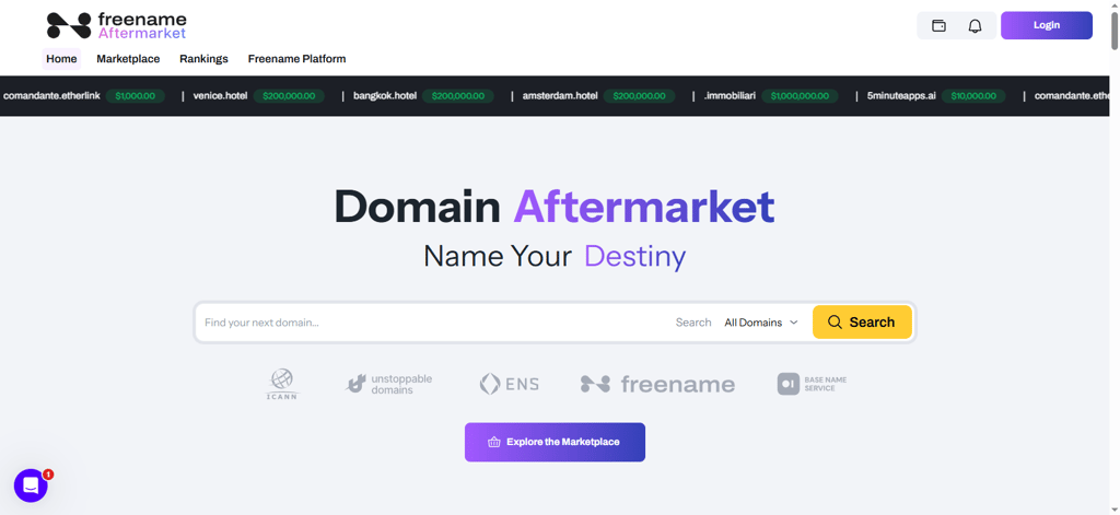 Web3 is ushering in a new era of the Internet — decentralized, open, and owned by its users. With Freename Aftermarket, you can now buy and sell TLDs (Top-Level Domains) and SLDs (Second-Level Domains) directly on the blockchain.